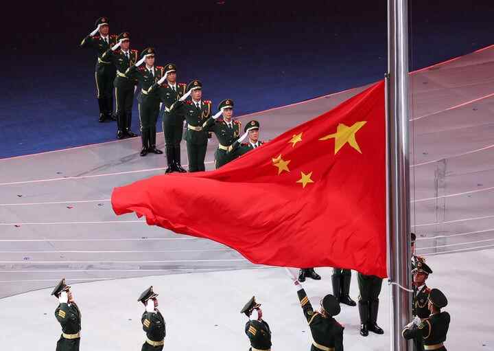 9月23日,中华人民共和国国旗在开幕式上升起。新华社记者 贾浩成 摄