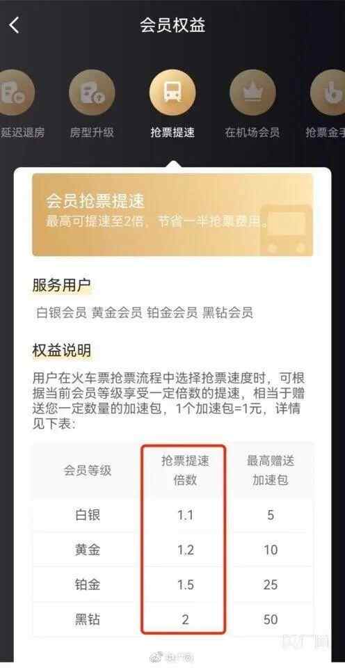 记者发现,在另一个第三方购票平台,会员分为普通、白银、黄金、铂金、黑钻等不同等级,不同等级享受不同权益。