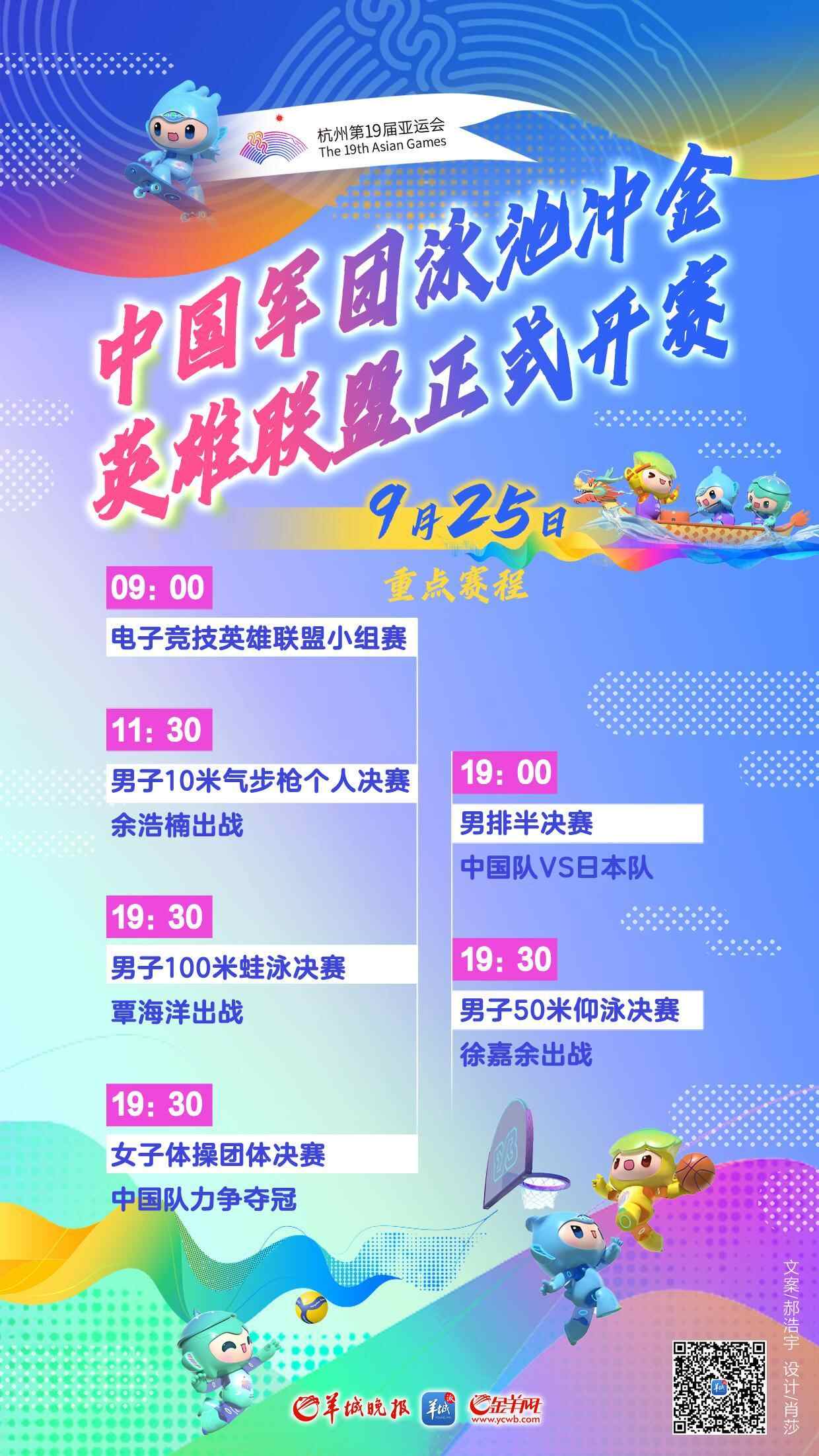 另外,9月25日9时,电竞英雄联盟项目小组赛正式开打,一共有4个小组将一直厮杀到12时,比赛为BO1模式。