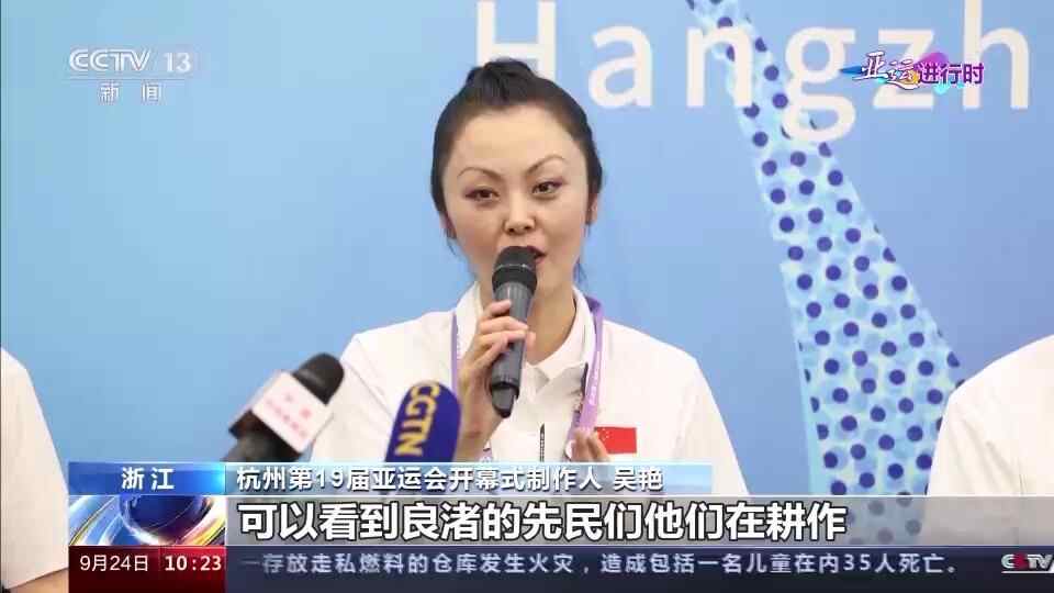 杭州第19届亚运会开幕式制作人 吴艳:大家在秋分的这一天,可以看到良渚的先民们他们在耕作、他们在庆祝丰收。我们觉得不管是杭州的观众,还是来自亚洲各个国家的运动员,他们在“大莲花”的这一天,让他们感受到丰收的快乐,也希望让他们得到这份美好的祝福,在赛场上折桂 。