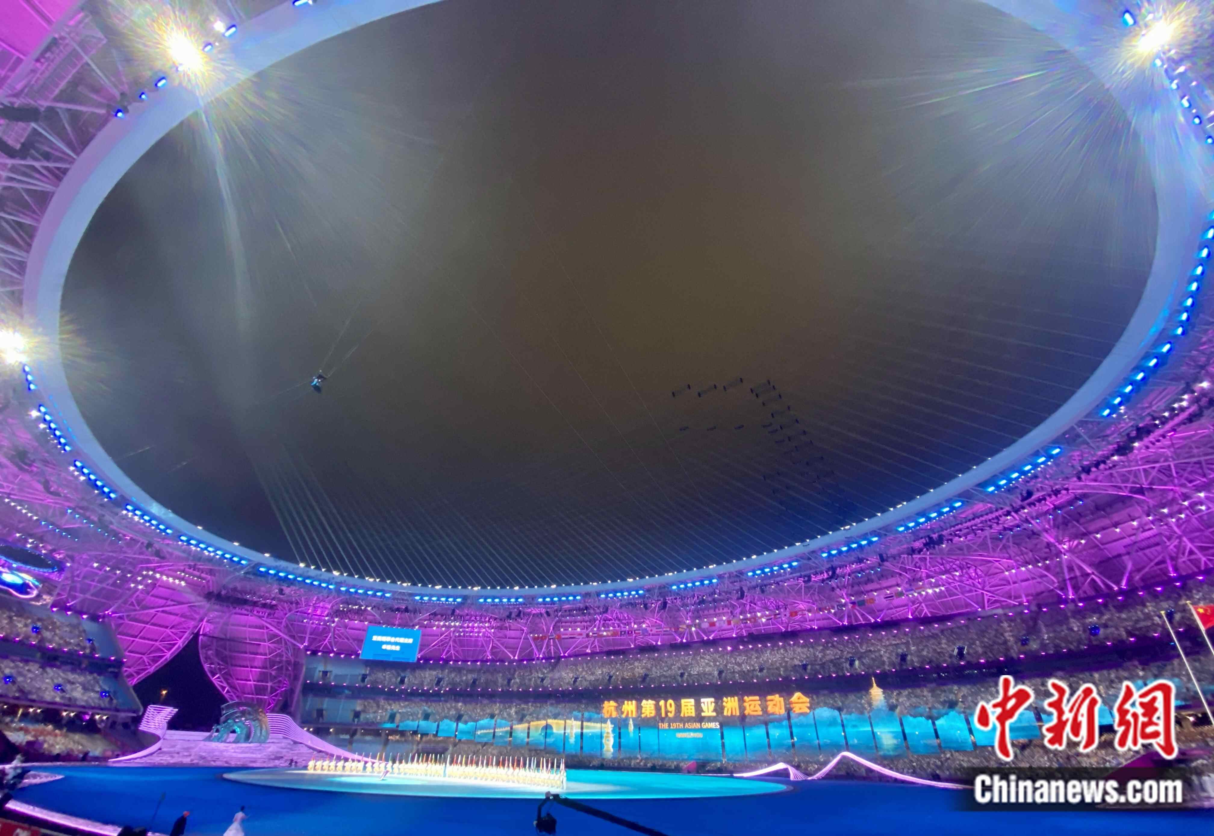 中新社杭州9月24日电 (方堃 项菁)看得见数字烟花、听得见钱江潮水、闻得到桂花香气……23日晚,钱塘江两岸灯光照耀古今,杭州第19届亚运会开幕式多项环节“刷新”亚运史。