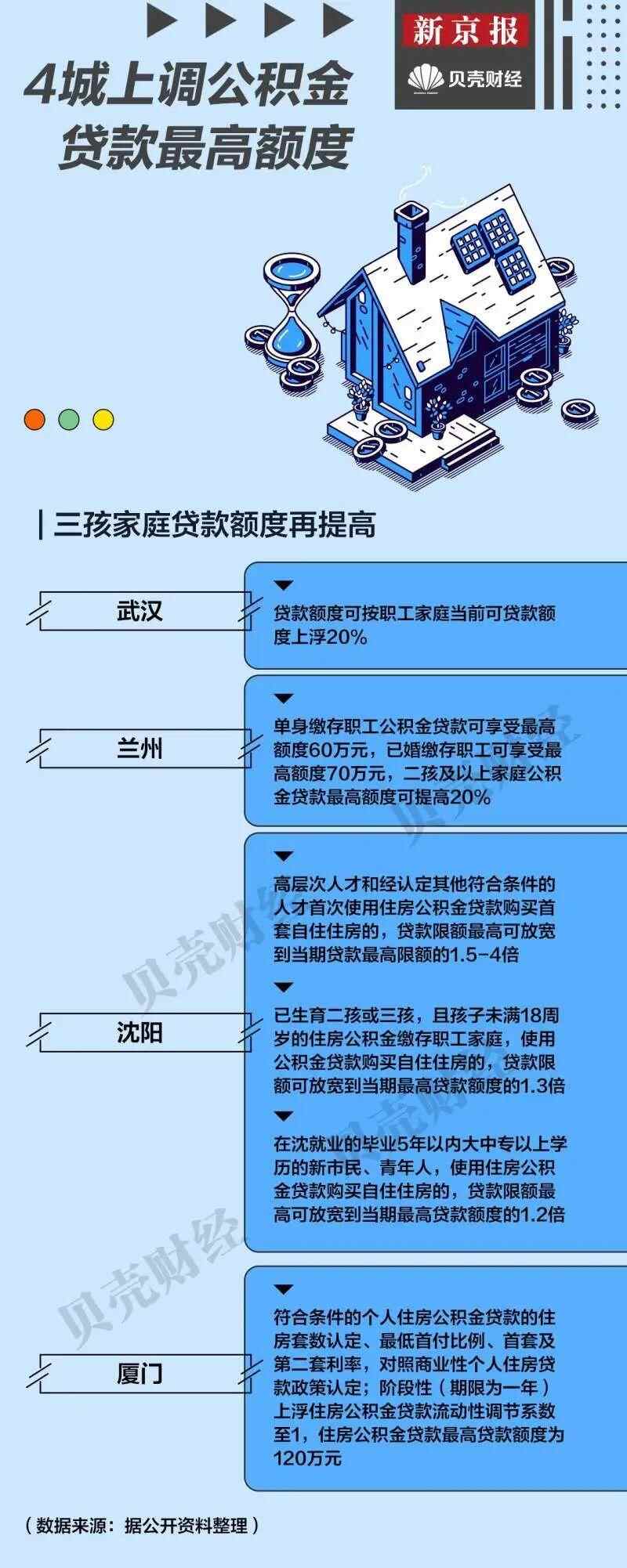 9月以来,4城上调公积金贷款最高额度,三孩家庭贷款额度再提高。