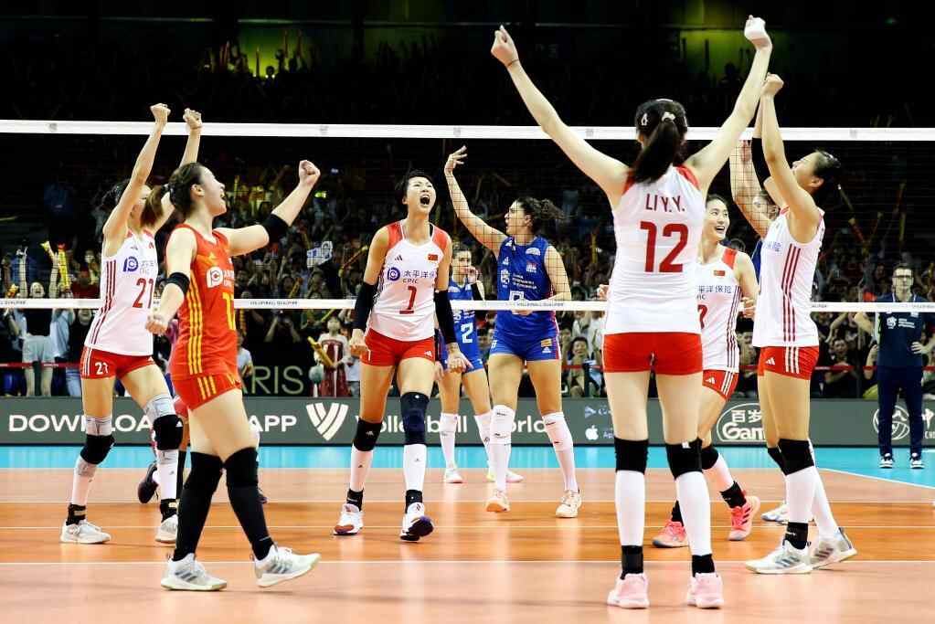 双方在第三局开局战至5:5后,中国队打出了一波10:2的得分潮,并以25:14拿下第三局。