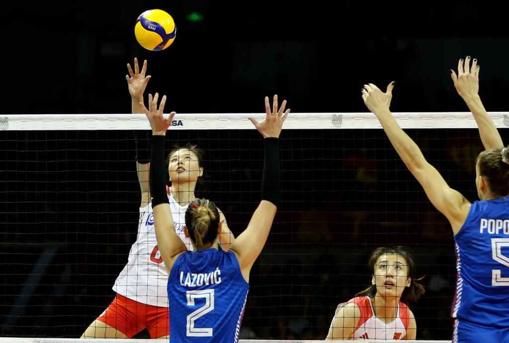 首局大部分时间双方打得比较胶着。局末阶段,塞尔维亚队调整了攻手组合,打出一波4:1的攻势,将分差拉开。虽然王媛媛将比分扳至23:23平,但中国队仍以23:25丢掉第一局。