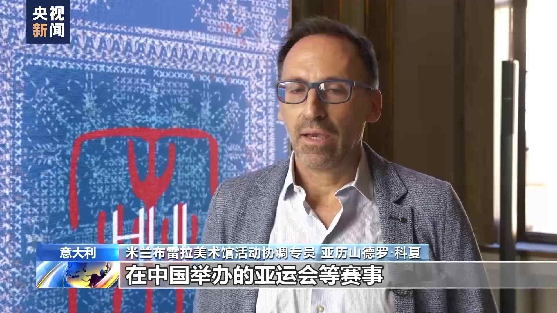 米兰布雷拉美术馆活动协调专员 亚历山德罗·科夏:在中国举办的亚运会等赛事,为各国政府、文化和体育机构创造沟通交流(的机会),这是一个交流,接触的场合,人员的相互接触就意味着文化的交融。