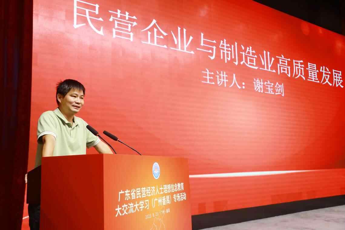 活动邀请了暨南大学经济学院研究员、博士生导师,特区港澳经济研究所副所长谢宝剑,以《民营企业与制造业高质量发展》为题作主旨宣讲。宣讲内容主题鲜明、阐述生动,系统分析了当前形势的特点和政策取向、民营经济生存与发展的环境,指明了释放民营经济发展动能,推动制造业高质量发展之路,对凝聚民营经济人士思想共识,更好地服务“两个健康”具有积极推动作用。