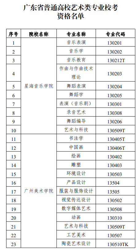 9月26日,广东省教育考试院公布了广东省普通高校艺术类专业校考资格名单。