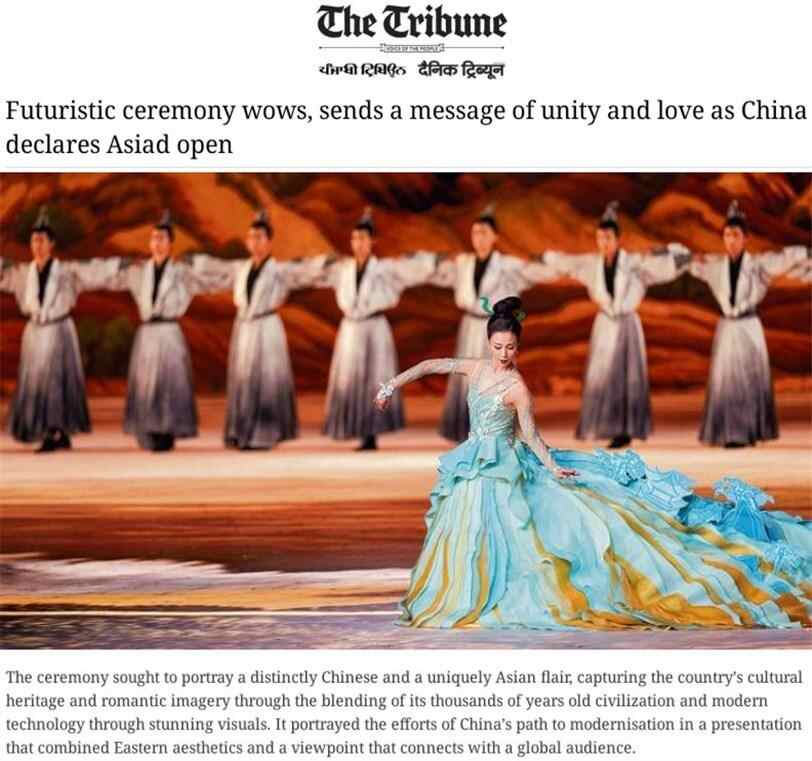 《印度论坛报》在报道中称,令人惊叹的杭州亚运会开幕式不仅充满未来感,还传递了团结和爱的信息。