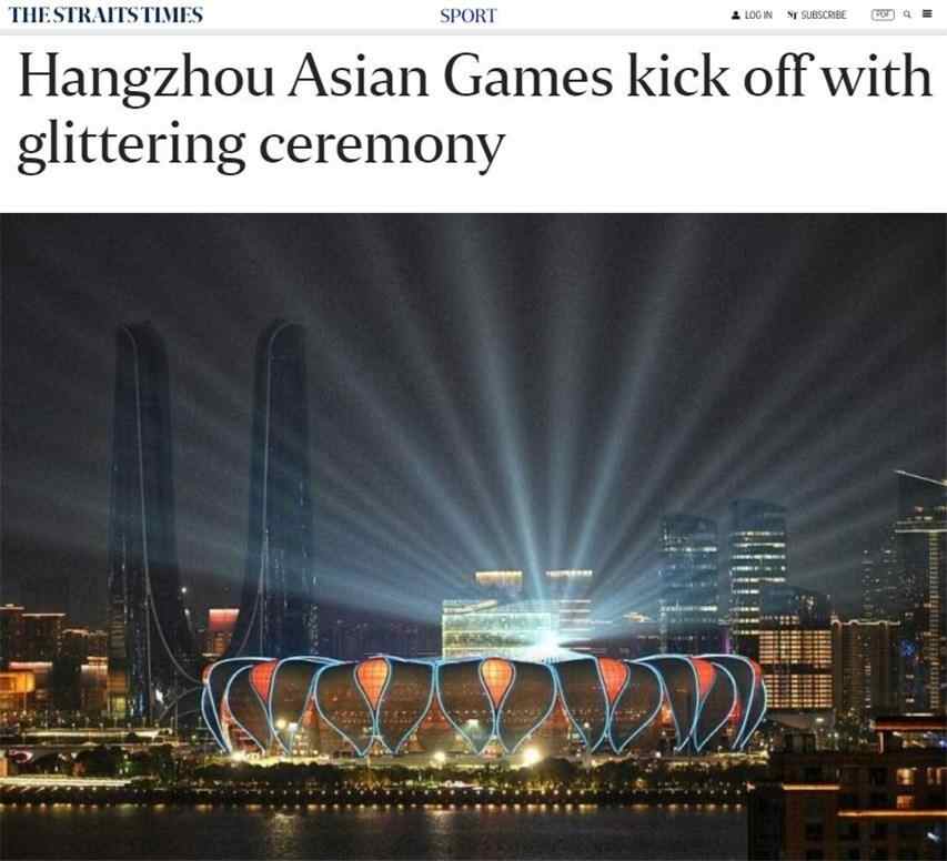 新加坡《海峡时报》网站的报道指出,杭州这座城市及其美丽的西湖千百年来给诗人和画家带来了无数灵感,现在这一“浪漫之城”将因亚运会这一体育盛事而登上头条,真是再合适不过的了。