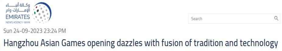 阿联酋国家通讯社网站称赞传统与科技交融的杭州亚运会开幕式令人眼花缭乱。