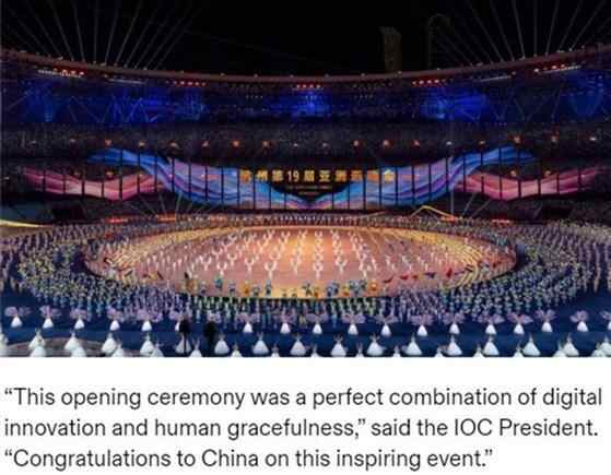 而开幕式以《潮起亚细亚》为名,意在向杭州这座城市的自然景观和时代变迁致敬。开幕式融合了3D动画、带有文化元素的增强现实等尖端技术,展示了中国丰富的文化遗产。