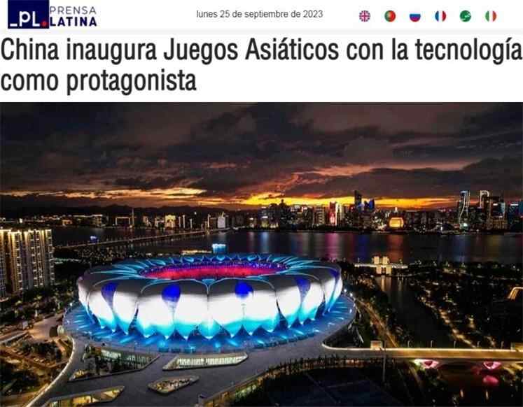 拉美社在报道中说,亚运会是亚洲地区最重要的体育盛会,本次亚运会开幕式的科技含量很高,展现了东道主杭州的传统文化和特色元素。据主办方介绍,他们希望杭州亚运会能将传统元素与绿色、智能等现代理念相结合。