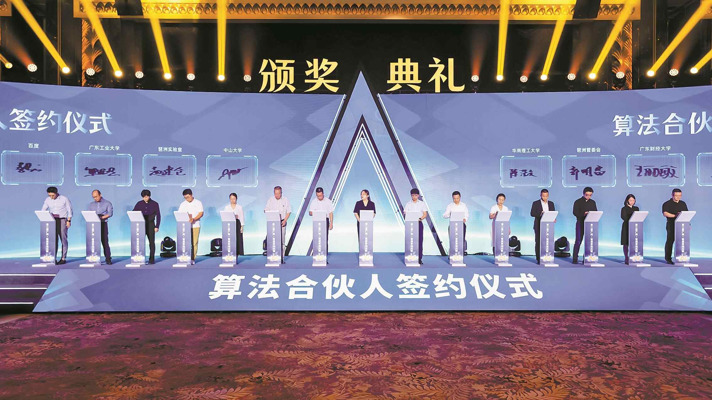 大会现场还举行了“算法合伙人”首批签约仪式。由腾讯、百度等企业代表,琶洲实验室、中山大学、华南理工大学等高校科研机构代表,智联招聘、猎聘等人力资源服务机构代表,与政府部门签订“算法合伙人”合作框架协议,构建起需求端、供给端、链接端、服务端协同发力的人才服务链条。