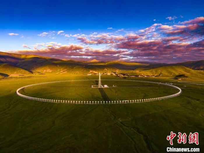 大科学装置圆环阵太阳射电成像望远镜“千眼天珠”位于海拔3820米的四川省甘孜州稻城县噶通镇,由中国科学院国家空间科学中心牵头建设,占地面积约1平方公里,由313部直径6米的抛物面天线构成,均匀分布在直径为1公里的圆环上,通过对太阳和日地空间传播链条进行高质量监测,助力科学家理解日地空间环境系统和空间天气因果链。