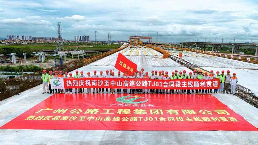 南中高速公路是粤港澳大湾区重大交通基础设施项目,建成通车将增强广州核心引擎作用和中山、深圳节点连接作用,与深中通道共同构成粤港澳大湾区两大重要交通枢纽,进一步助推粤港澳大湾区全面发展。其中,广州交投下属公路工程集团承建的南中高速TJ01合同段为南中高速公路起始段,主线里程2.499公里,包含新垦互通和南沙港互通,是项目建设的重要节点工程。