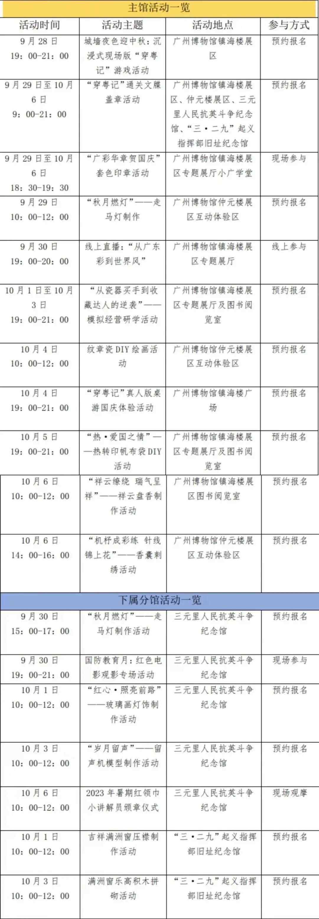 记者注意到,节日期间(9月29日至10月6日),广州市符合条件的博物馆、文化馆、图书馆等文旅场馆将延时至21时闭馆,延展夜间服务时长。