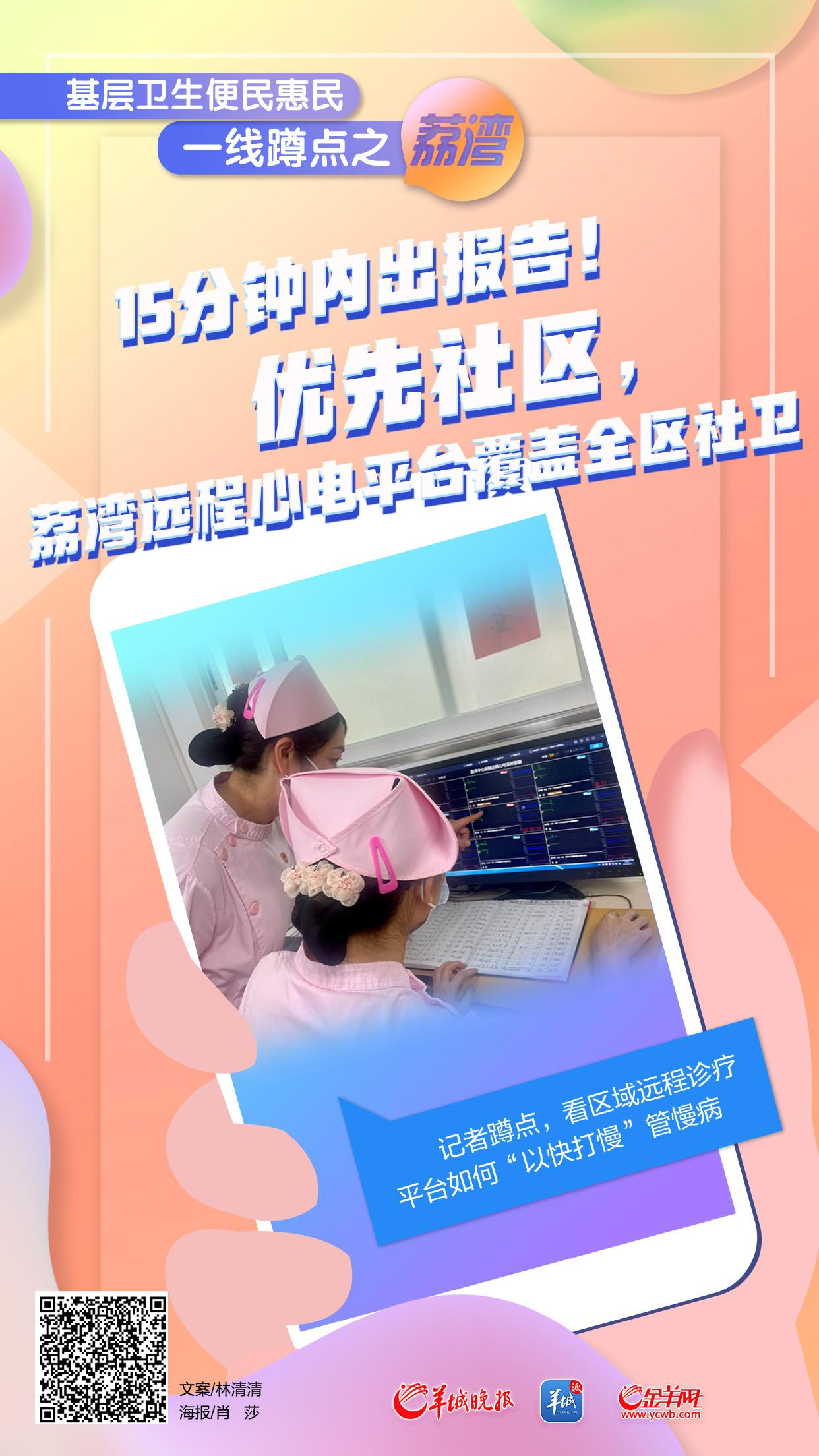 记者从荔湾区卫健局了解到,截至今年8月,广州荔湾已完成覆盖全区19家街道社区卫生服务中心的远程诊疗平台搭建。在同等条件的情况下,提高社区诊断优先级,实现平诊心电图15分钟内给社区发回诊断报告。羊城晚报记者实地探访,居民最快3分钟就能拿到检测报告,实时连线获得远程诊疗。