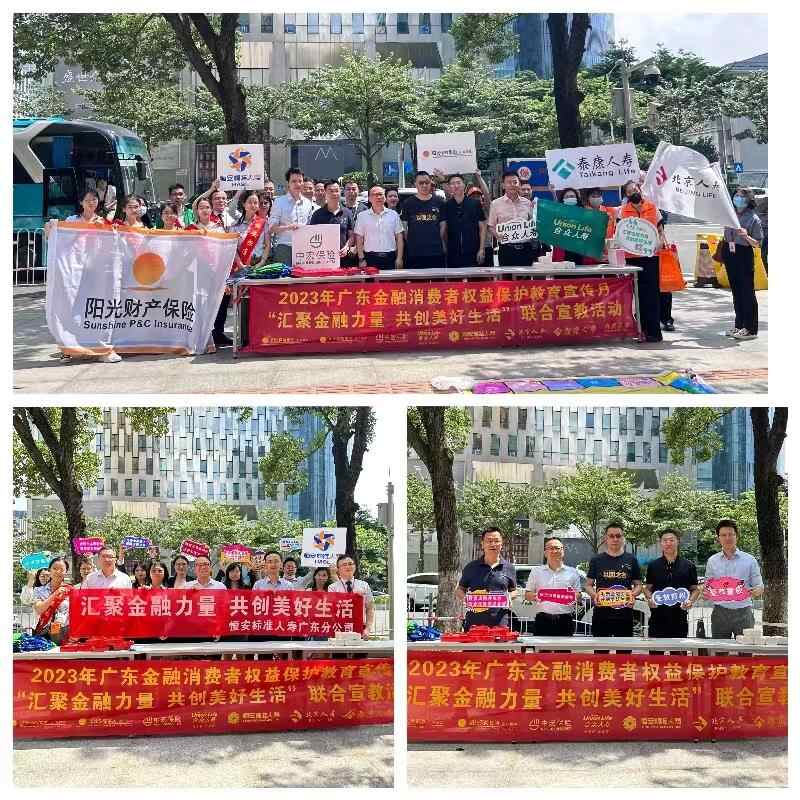 为提升消费者金融素养,增强金融安全意识,推进行业诚信文化建设,营造安全稳定的金融环境。9月26日,恒安标准人寿广东分公司联合阳光人寿、阳光财险、合众人寿、泰康人寿、中宏人寿、北京人寿、泰康养老等8家险企共同走进广州市人流密集的珠江新城CBD商圈,开展以“汇聚金融力量 共创美好生活”为主题的金融消费者权益保护教育宣传月宣教活动。