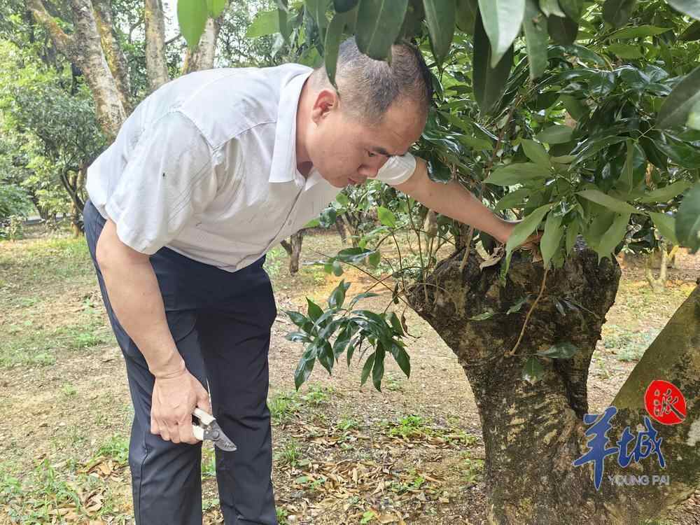 一名中年男子走进位于茂名高州市根子镇的千年贡园,他边走边观察每一棵树,有时还会在树下驻足仰望。这名男子并非游客,而是贡园所在地根子镇柏桥村的村干部何树志,他的家就在贡园旁边。闲来进园巡逻,是何树志多年来养成的一个习惯。