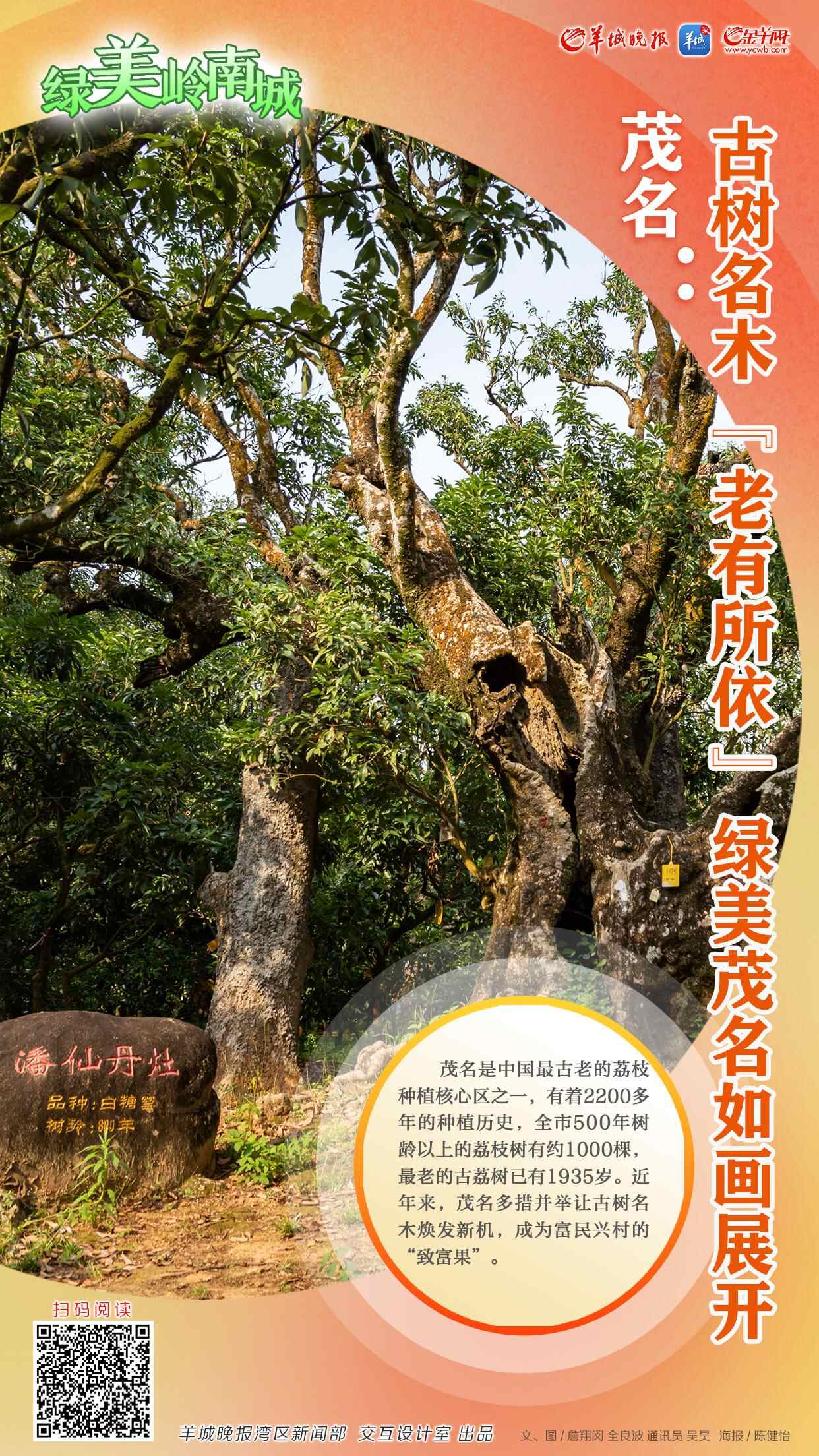 古树是一段历史,一缕乡愁,更是自然资源中的瑰宝,被称为“有生命的绿色活化石”,见证着城市的历史传承。茂名是中国最古老的荔枝种植核心区之一,有着2200多年的种植历史,全市500年树龄以上的荔枝树有约1000棵,最老的古荔树已有1935岁。近年来,茂名多措并举让包括古荔枝树在内的古树名木焕发新机,成为富民兴村的“致富果”。