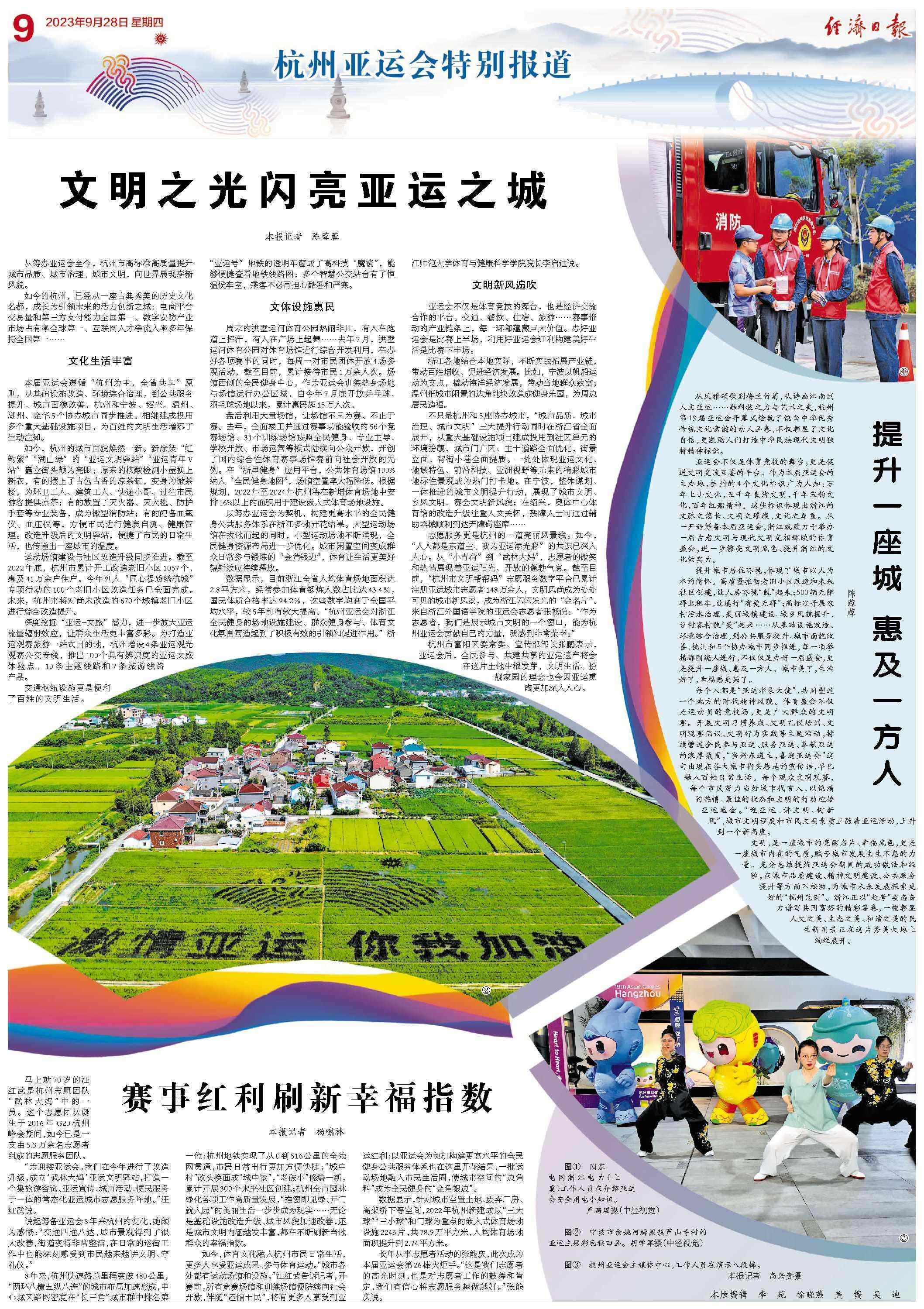 杭州市富阳区委常委、宣传部部长张鹏表示,亚运会后,全民参与、共建共享的亚运遗产将会在这片土地生根发芽,文明生活、扮靓家园的理念也会因亚运熏陶更加深入人心。
