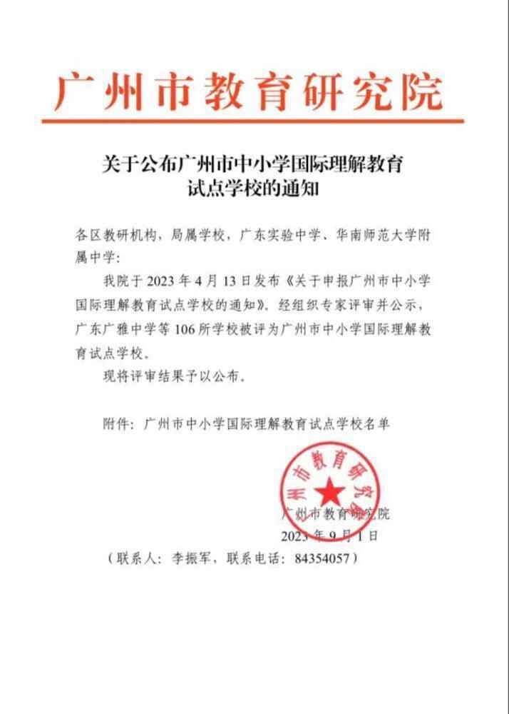 据悉,经过学校申报,广州市教研院组织专家评审,天河区有15所学校被批准为市级国际理解教育试点校。