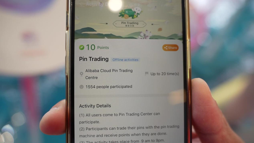 拿到明信片,他又转身走向了文化小屋对面的徽章兑换中心,在不断转动的徽章展示转盘上,选中了一枚熊猫徽章。简单操作过后,徽章成功交换,10个低碳积分又进入了他的账户中。