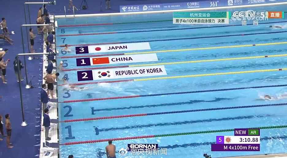中国队以3分10秒88的成绩夺得冠军,并打破了亚洲纪录。
