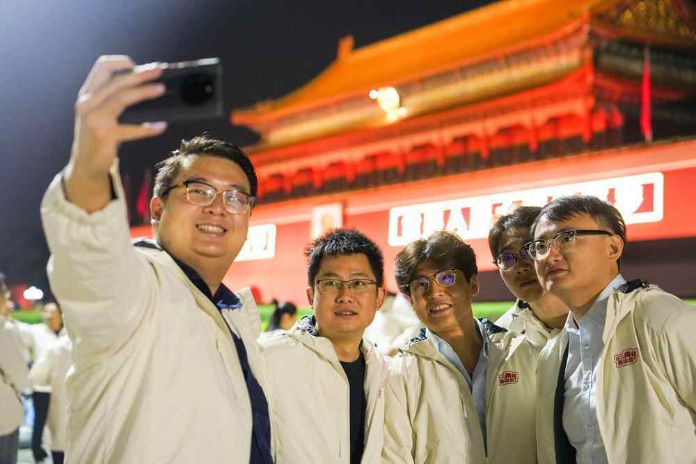 9月25日清晨,国旗护卫队清脆有力的脚步声回荡在天安门广场上空。国旗缓缓入场、迎风上升,直到飘扬在旗杆的顶端,这一幕深深震撼了粤港澳大湾区青年科学家们,“好像听到祖国的心脏正蓬勃有力地跳动着!”