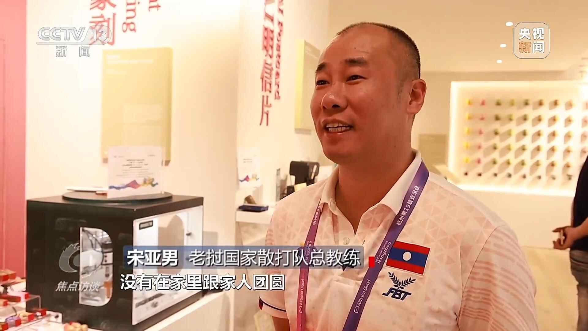 老挝国家散打队总教练 宋亚男:“因为他们是在中国杭州参加亚运会,没有在家里跟家人团圆,给他们一个小礼物,想让他们感受在这边过中秋节的氛围,我们在这里带他们团圆过节。”