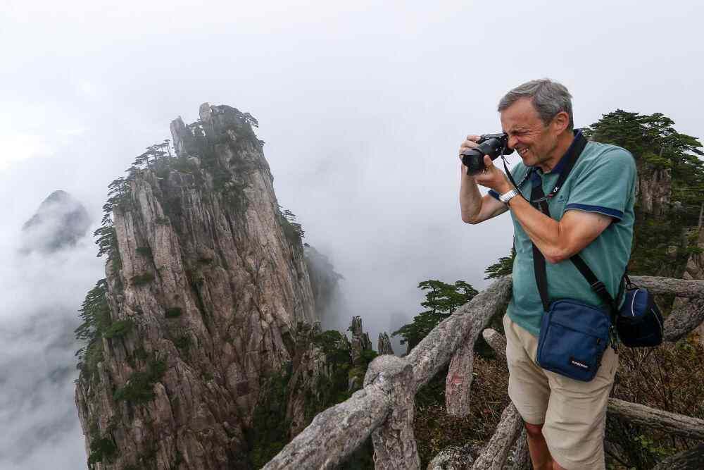 9月25日,外国游客在安徽省黄山市黄山风景区游玩。新华社发(施亚磊摄)