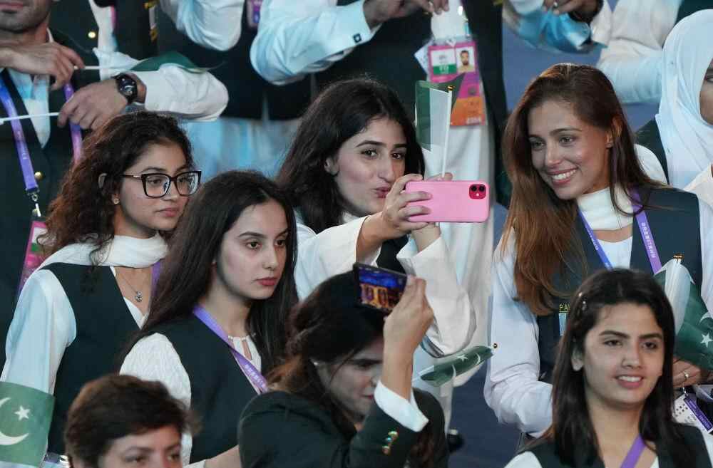 9月23日,第19届亚洲运动会开幕式在杭州举行。巴基斯坦代表团在开幕式上入场。 新华社记者万象 摄