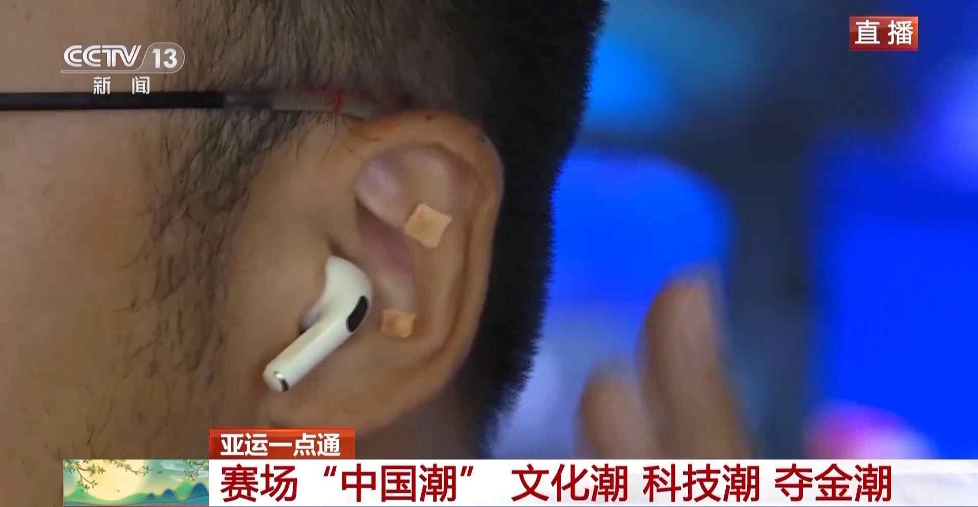总台央视记者 黄达:第一个潮,就是文化潮。这几天,在主媒体中心,我会看到有不少中外媒体记者耳朵上都粘着我耳朵上的这种耳部针灸。在贴纸下面是中药的颗粒,通过刺激穴位可以实现对疲劳的缓解。在主媒体中心的中医体验馆里,不仅有耳贴还有把脉和中式推拿。与中医文化一同风靡的,还有中国的书法、绘画、非遗技艺等等,在亚运村的文化屋,亚运村开村十多天来,这里已经接待了包括中外运动员,媒体人员的非遗技艺体验。我昨天采访一位外国运动员时,我问他亚运遇上中国节,他的感受是怎样的,他说,在这里天天都可以过中国节。