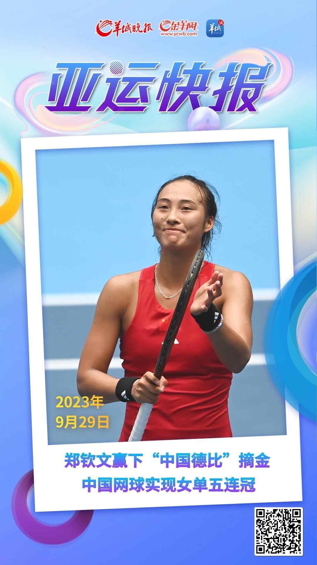 【亚运快报】郑钦文赢下“中国德比”摘金,中国网球实现女单五连冠