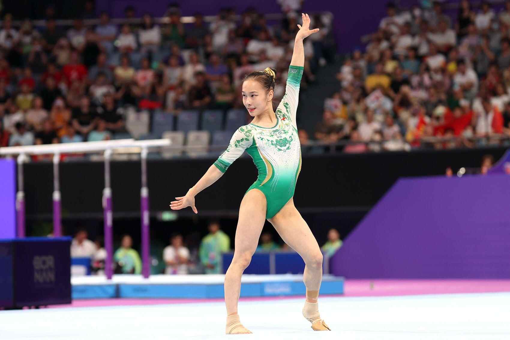 9月29日,杭州亚运会体操项目展开收官日的争夺。在女子自由体操决赛,中国选手章瑾和张欣怡出战,最终章瑾以13.100分获得冠军,继女子团体金牌之后个人再夺一金。同时,这也是中国体育代表团在本次亚运会上的第97块金牌。
