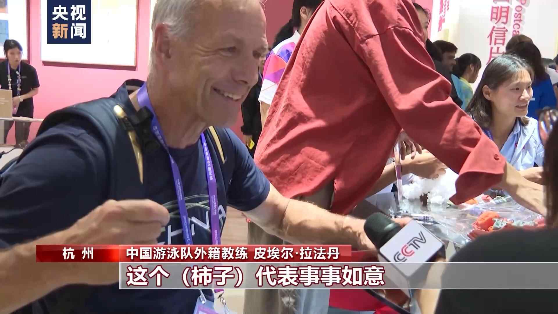 中国游泳队外籍教练 皮埃尔·拉法丹:他们告诉我,柿子代表事事如意,这太棒了,我希望这个好运能带给我的游泳运动员,中国游泳队的运动员们。