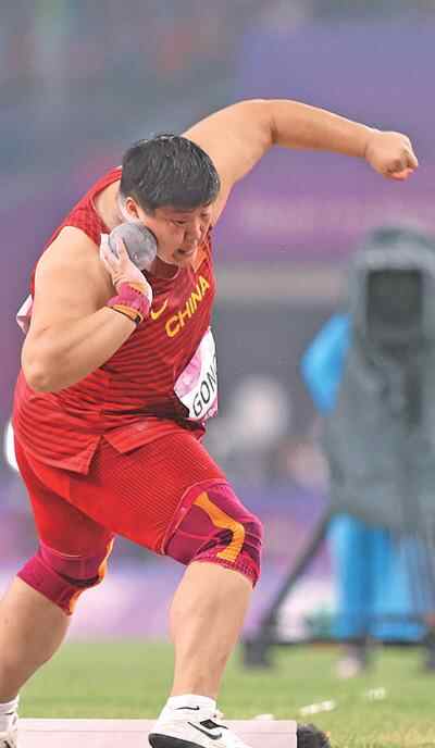 9月29日晚,浙江杭州奥体中心体育场,中国体育代表团选手巩立姣踏上本届亚运会赛场。巩立姣以19米58的成绩夺得女子铅球冠军,连续第三次获得亚运会金牌。作为东京奥运会冠军,这是她第四次征战亚运会。