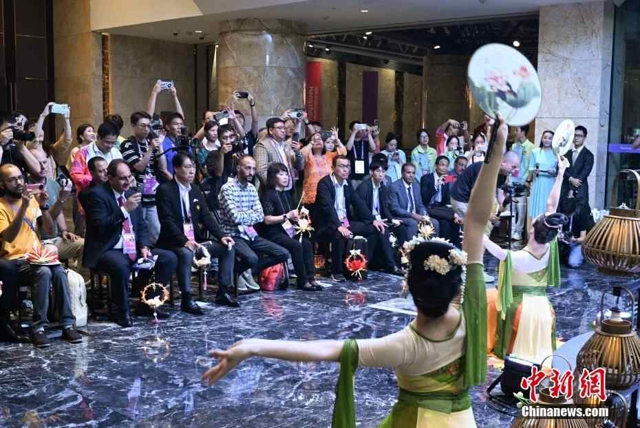 9月29日,中国传统节日中秋节,浙江杭州举行2023西湖中秋赏月雅集活动,向亚奥理事会嘉宾等亚洲友人展示传统中华文化。图为现场的《春江花月夜》节目展演吸引宾客。