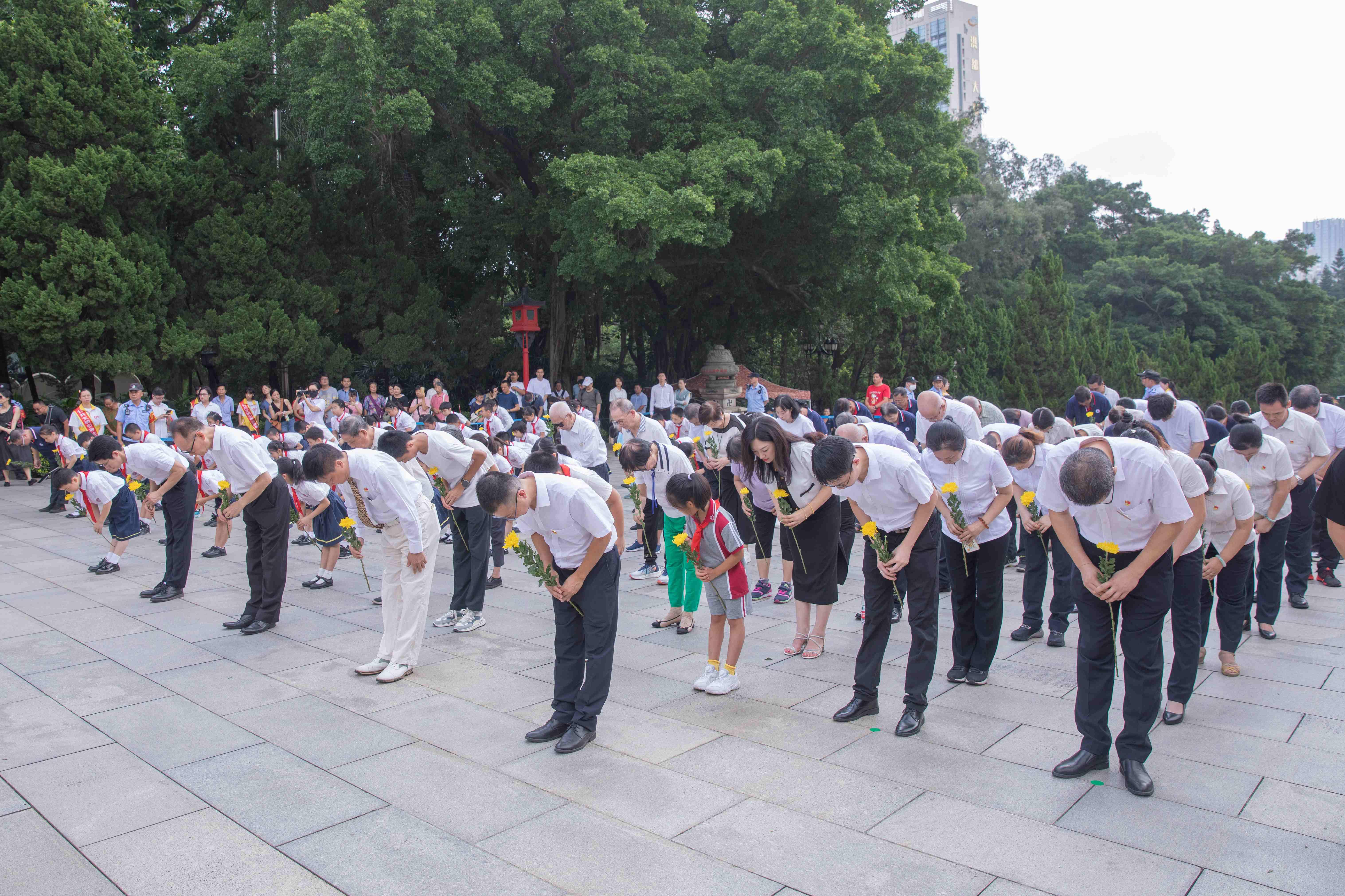 忠魂不泯,浩气长存。今年9月30日是我国第十个烈士纪念日,为铭记先烈功绩,弘扬先烈精神,营造崇尚英烈、缅怀英烈的浓厚氛围,广州市黄花岗公园举行“铭记烈士功勋·传承英雄血脉”9·30烈士纪念日主题活动,缅怀先烈志,共铸中华魂。广州市退役军人事务局、先烈中路小学师生代表、烈士后人代表、黄花岗公园全体工作人员约100人参加了活动。