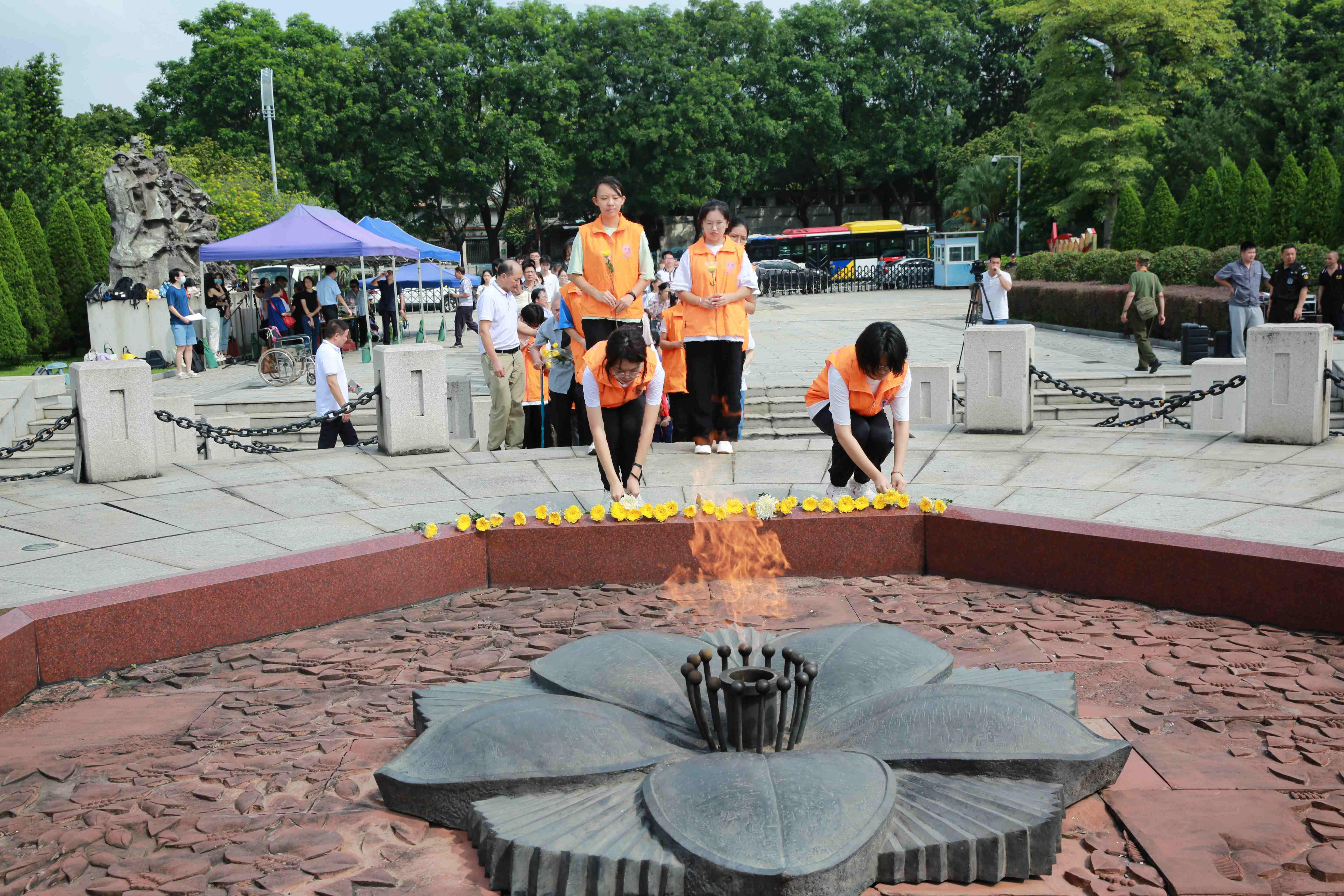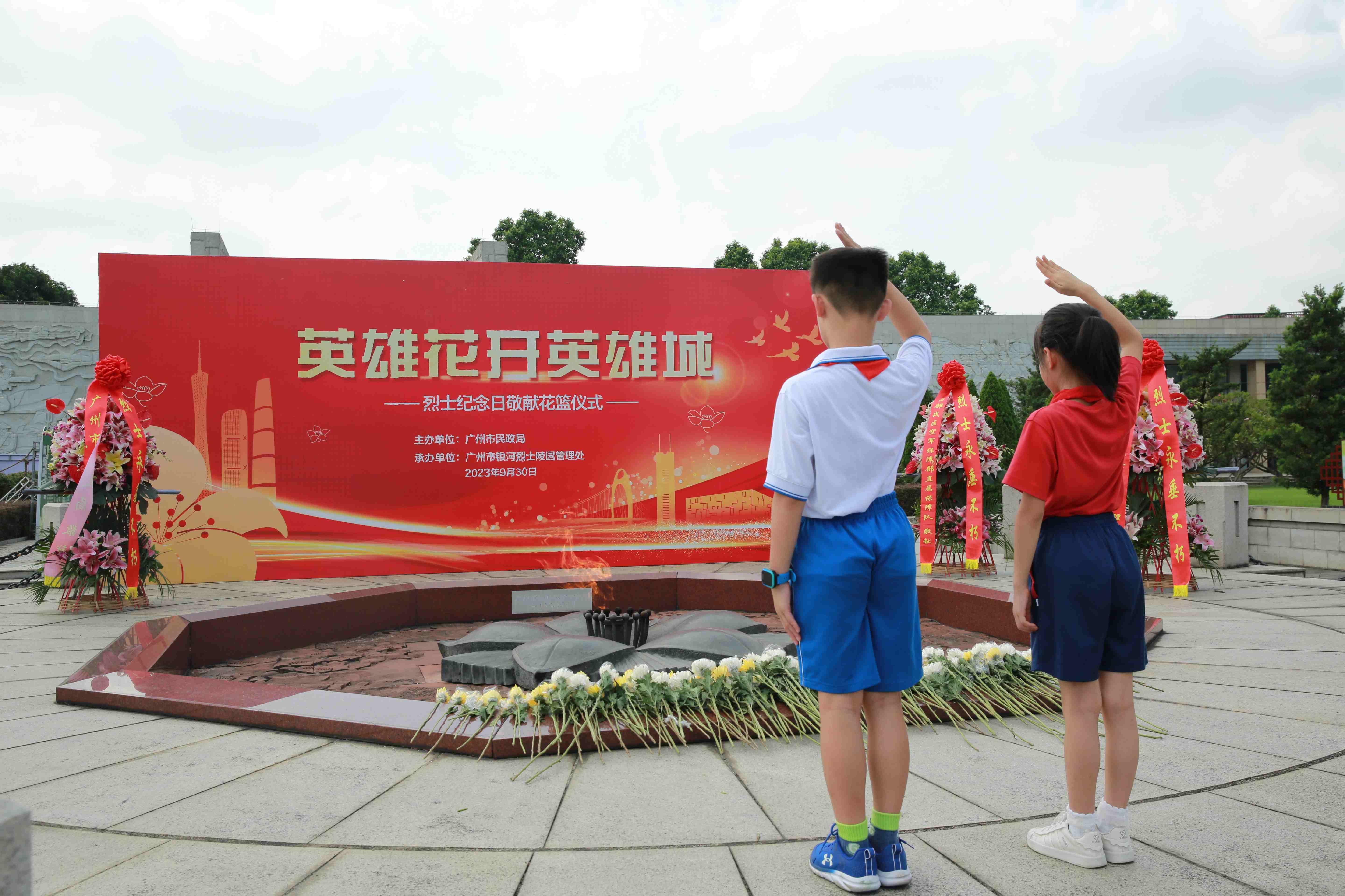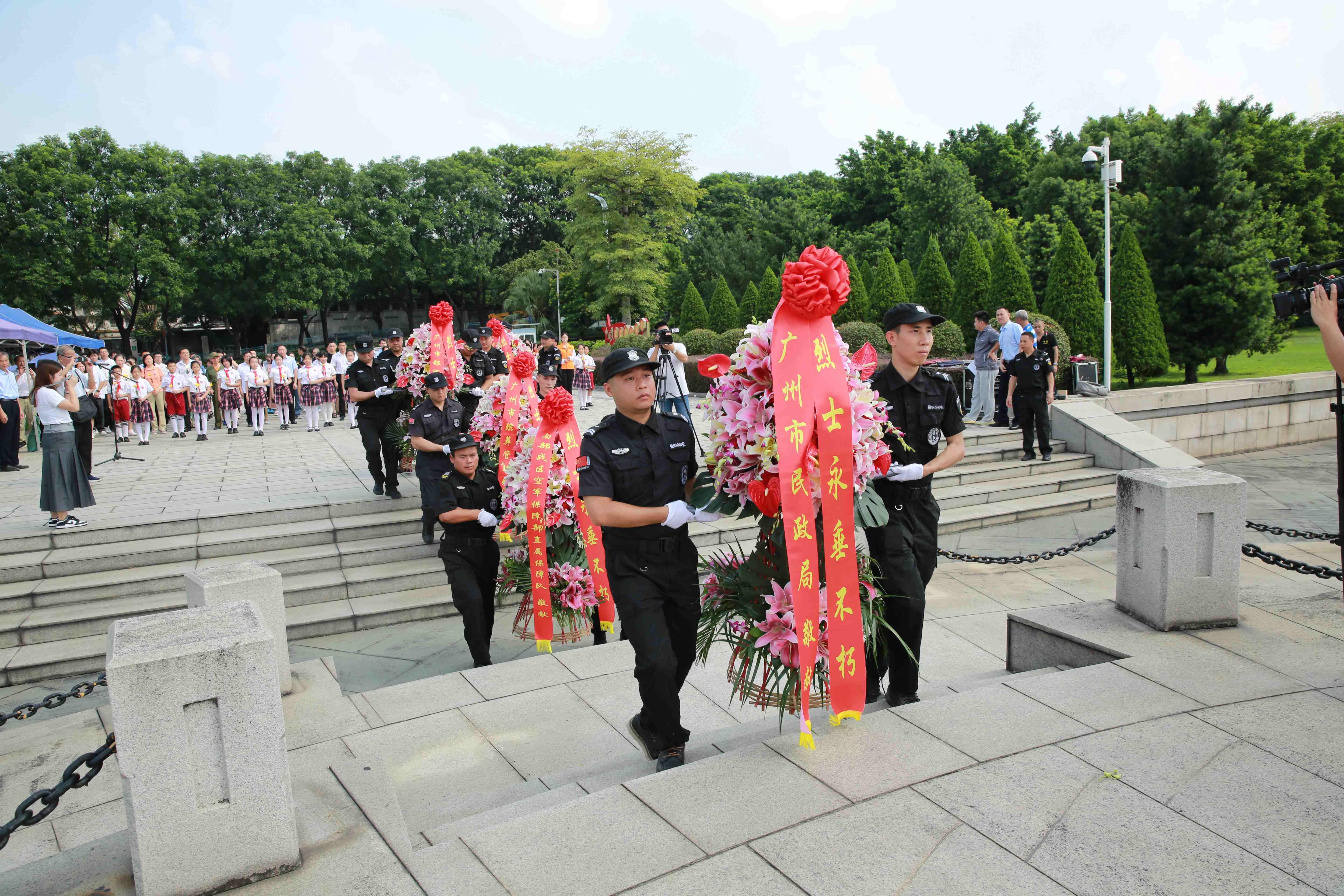 鲜花献英烈,哀思祭英魂。9月30日上午,广州市银河烈士陵园在广场举行向烈士敬献花篮仪式。广州市民政局、广州市殡葬管理处、天河区兴华街建武社区党委、华南理工大学工商管理学院师生以及烈属代表近120人,在长明火炬前隆重集会,深切缅怀纪念烈士,传承弘扬烈士精神。