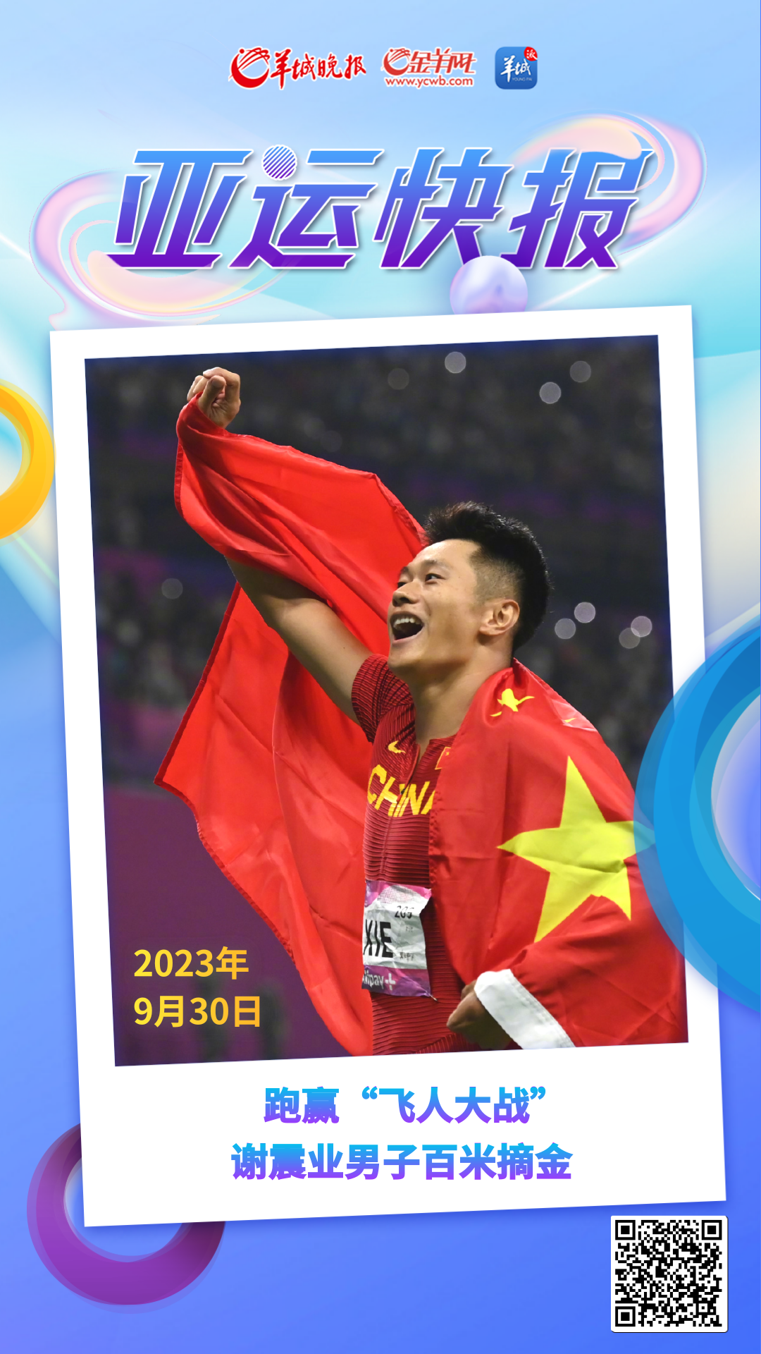 【亚运快报】谢震业在杭州亚运会田径男子100米决赛中摘金