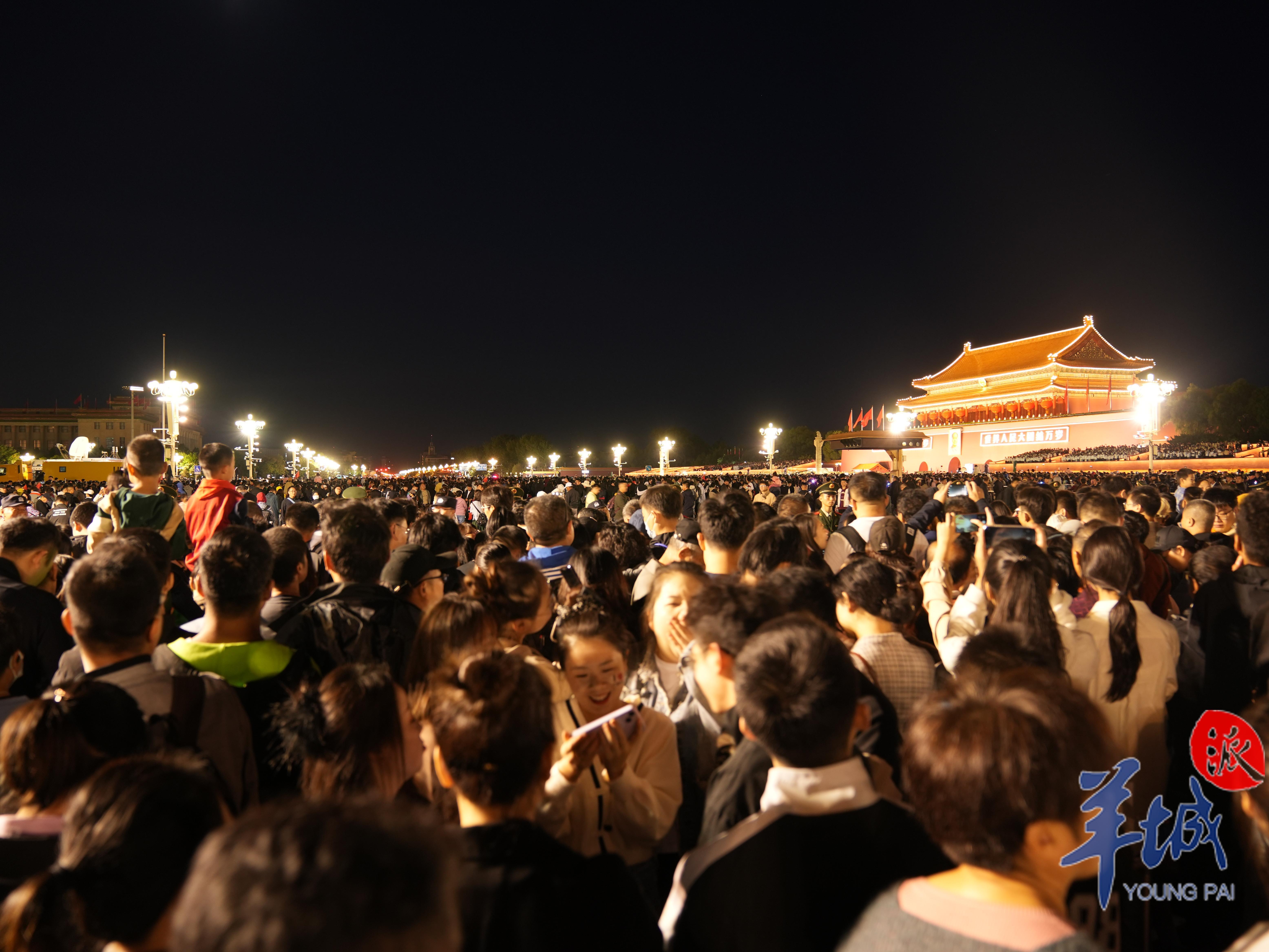 当东方晨曦放光,天安门前的男女老少已汇聚成一股庞大的人流,没能成功预约的人们也聚集在天安门广场外围不愿离去。直至红日初升、国旗飘扬、信鸽飞舞,欢声笑语在人群中不断传递时,伫足整夜的人们方才尽兴而归,缓缓散去。