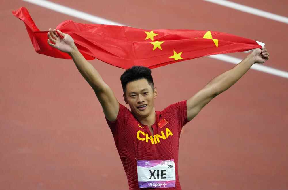 9月30日,中国选手谢震业在比赛后庆祝。新华社记者 江文耀 摄