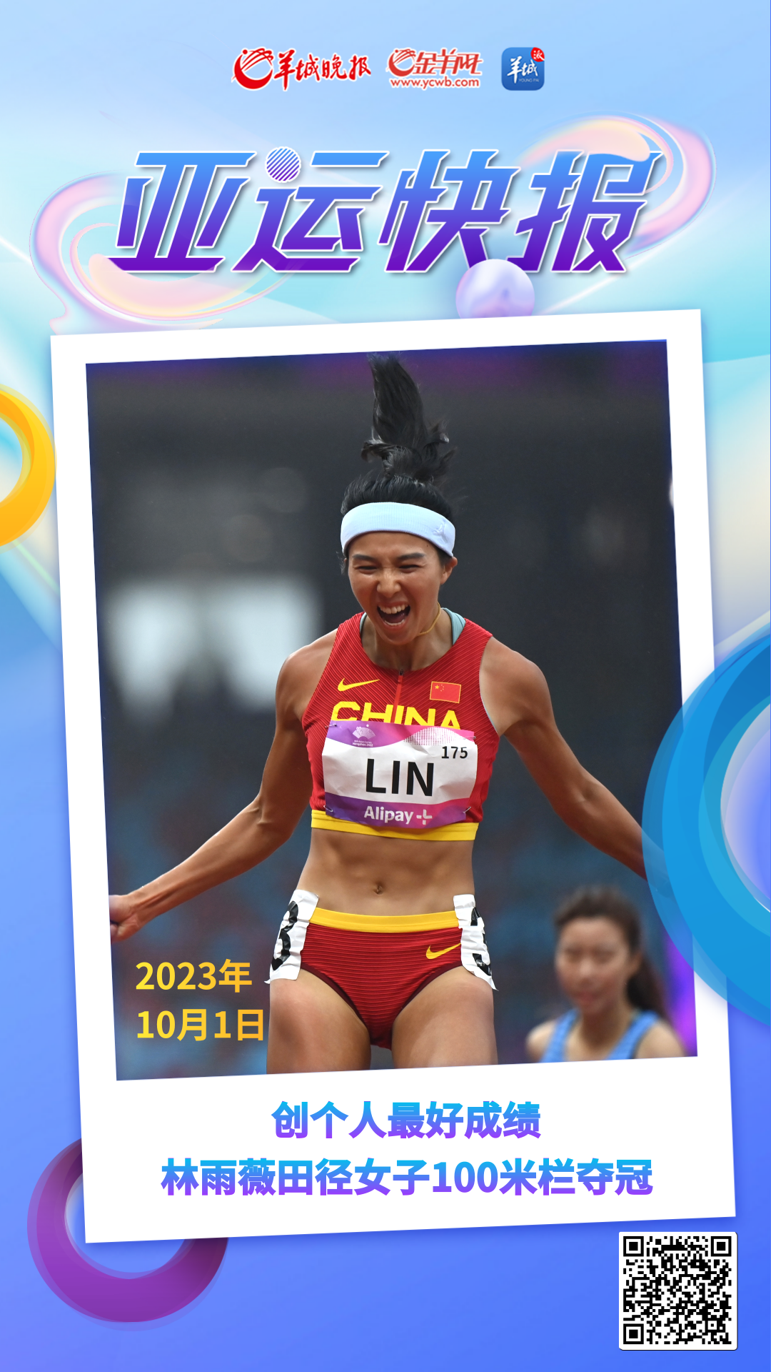 【亚运快报】林雨薇夺得杭州亚运会田径女子100米栏金牌