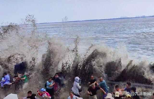 10月1日,浙江嘉兴。有网友发视频称,盐官观潮景区因浪太大把石护栏冲塌,多名游客被冲倒。
