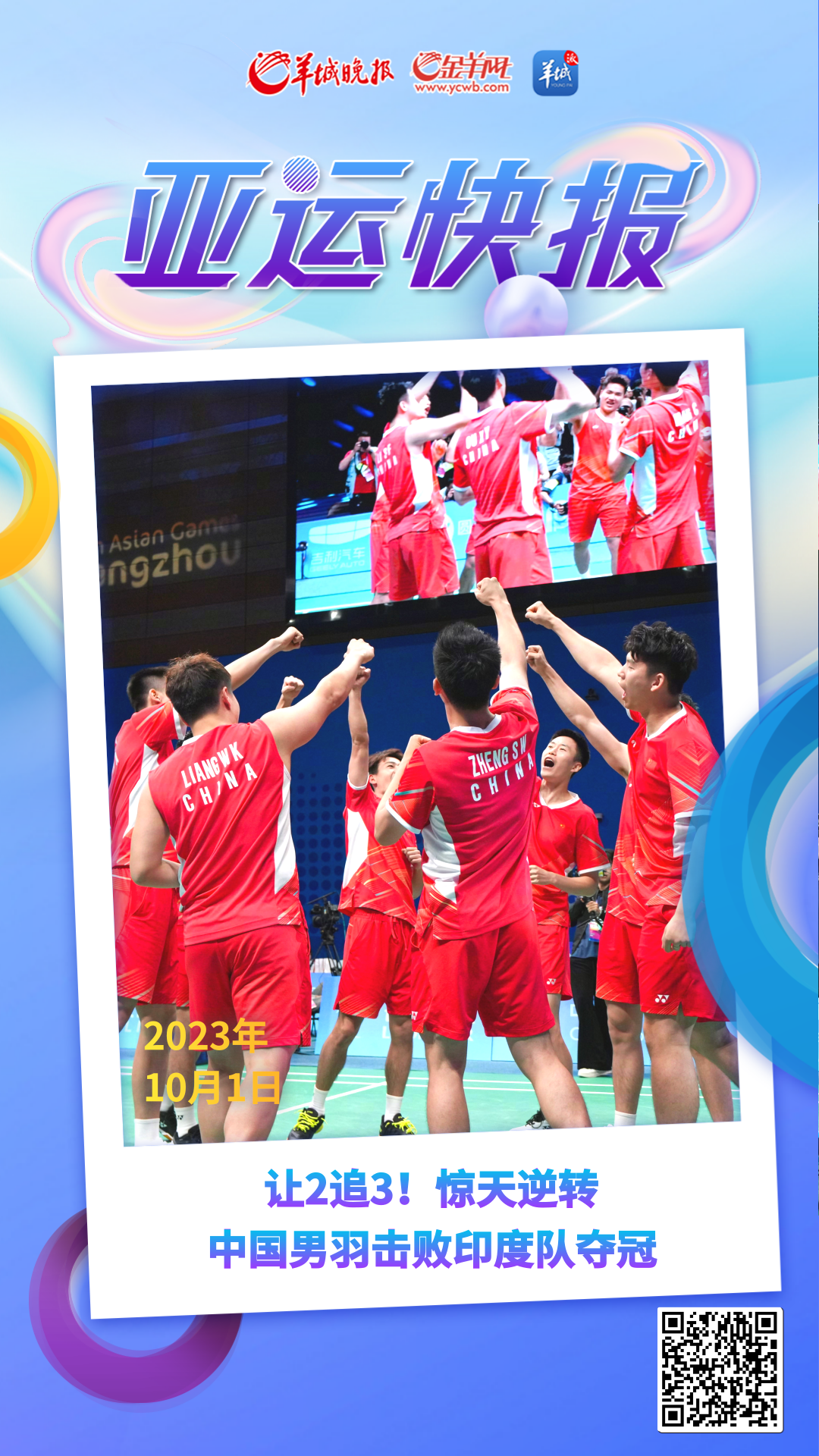 【亚运快报】让2追3!中国男羽实现惊天大逆转,击败印度队夺冠