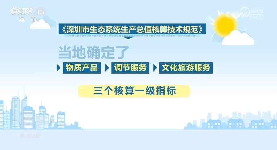 “调节气候”是核算GEP中众多指标的一个。根据当地的标准,深圳确定了物质产品、调节服务和文化旅游服务三个核算一级指标,此外还包括农林牧渔产品、调节气候、涵养水源、净化空气、削减交通噪声等十六个二级指标。那么这些指标又如何转化成经济数据呢?