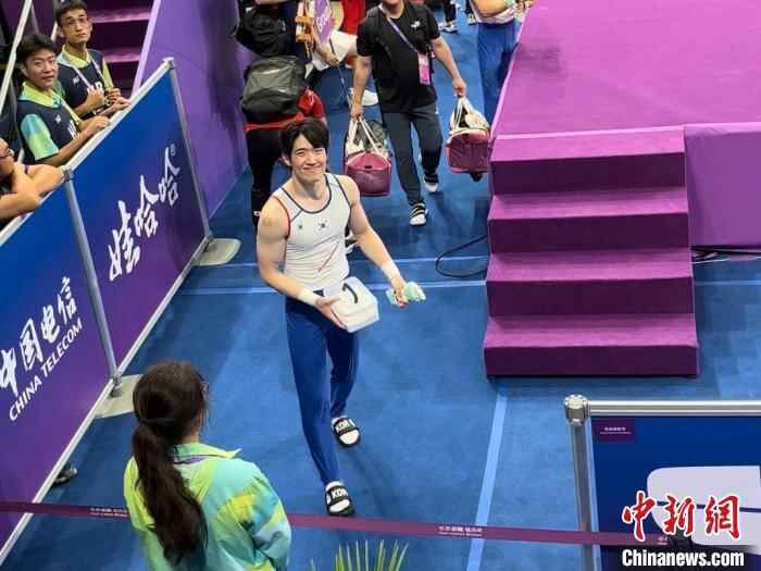 中新网杭州10月1日电(鲍梦妮)最近,一则中国观众在看台为韩国体操选手尹眞星加油的短视频在网络上热度不减。走下赛场的尹眞星面对这位观众脱口而出的“欧巴”有些“震惊”,随后又向他挥手致谢。