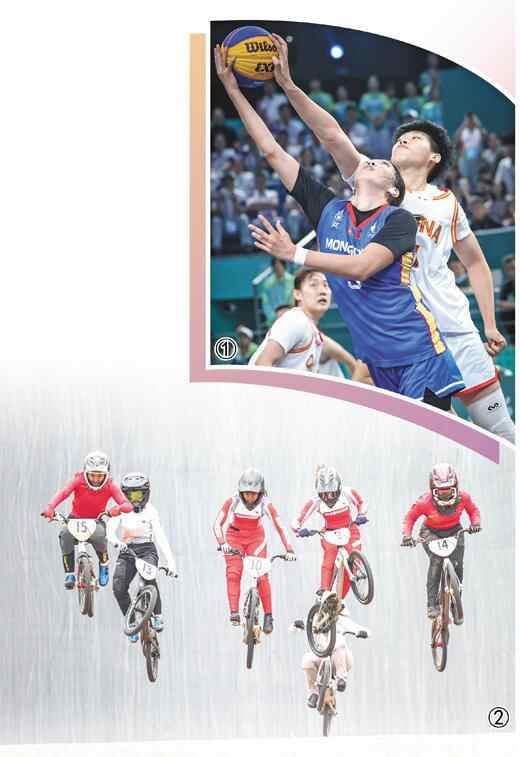 图①:10月1日,三人篮球项目女子U23(23岁以下)金牌决赛,中国体育代表团选手陈明伶(右)在比赛中。