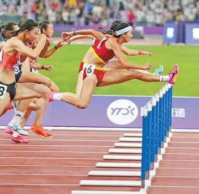 10月1日,杭州亚运会女子100米栏决赛,中国体育代表团选手林雨薇(右一)夺得金牌。